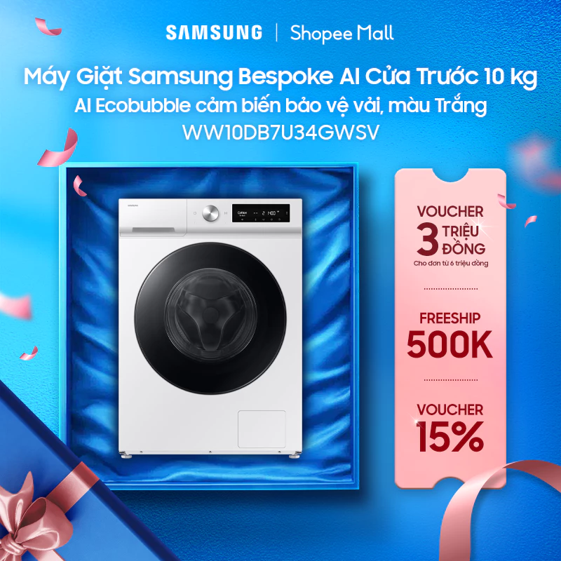 2. Máy giặt Samsung Bespoke AI 10 kg WW10DB7U34GWSV