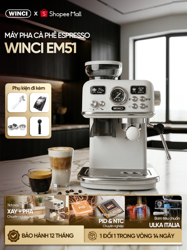 Dưới đây là một số đặc điểm nổi bật của Máy pha cà phê Espresso WINCI EM51: